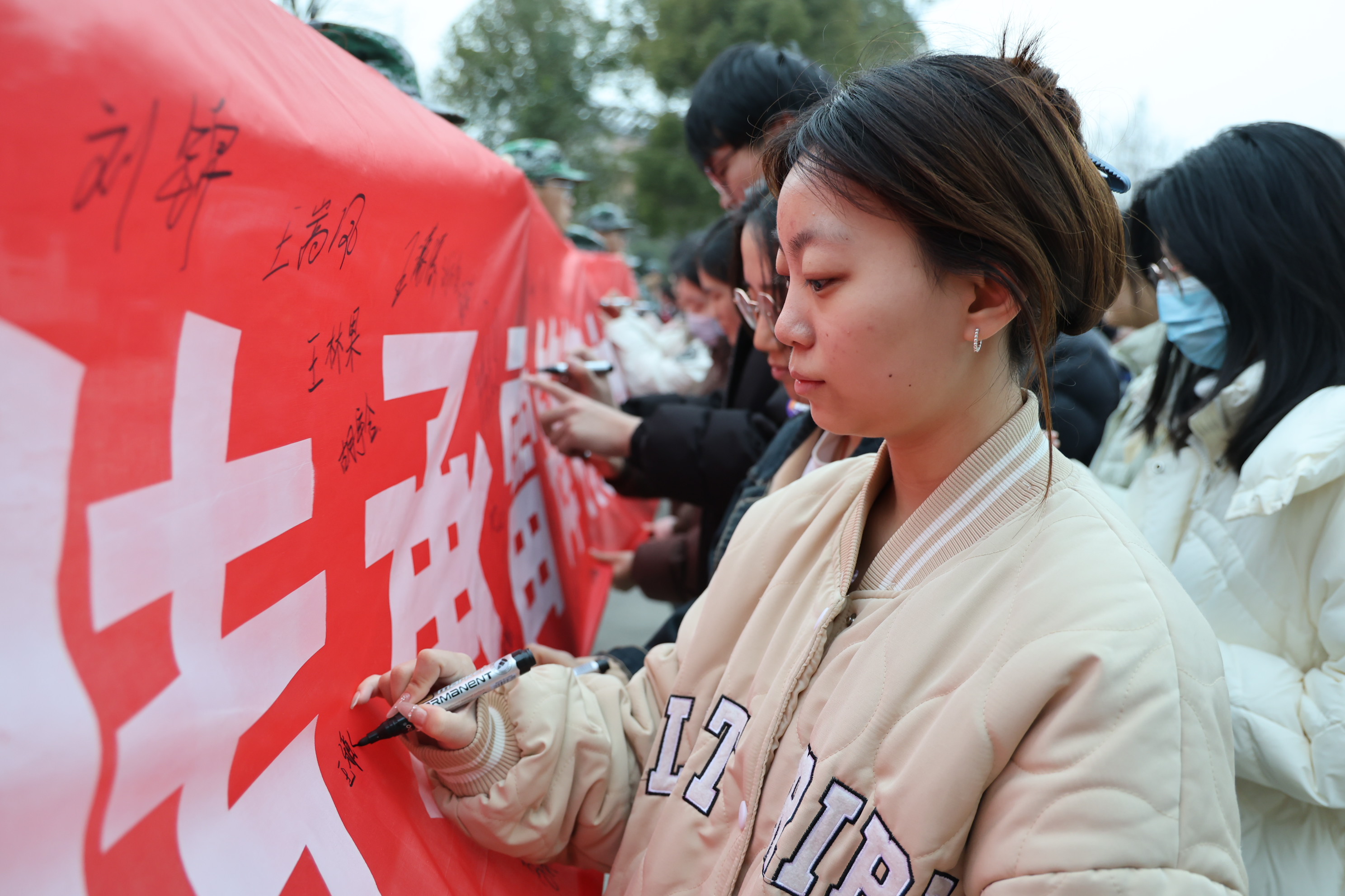 参与升旗仪式的全体教师与学生代表,进行“雷锋精神我传承”签名活动。