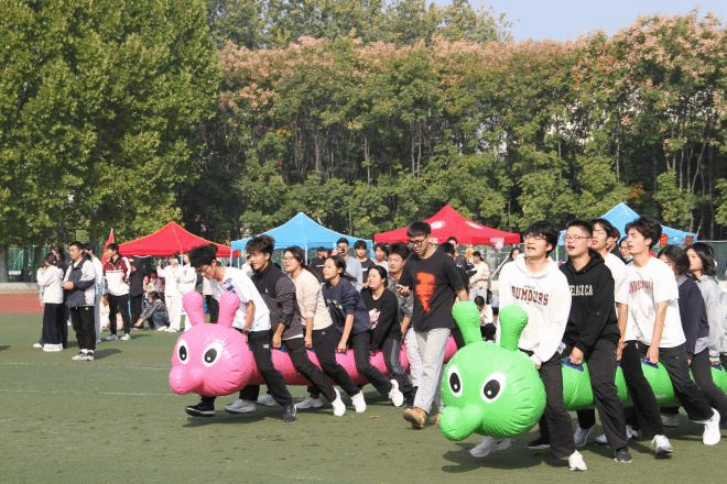 本次运动会共设置极速毛毛虫、同心鼓、袋鼠跳、旋风跑、滚雪球、纸杯传递等6个学生比赛项目,吸引了 300 多名学生踊跃参与。经过一整天的激烈角逐,体育学院、化工与材科学院、美术与设计学院获得团体一等奖;机电工程学院商学院、法学院、食品与药学院、音乐与舞蹈学院获得团体二等奖;医学院、国际教育学院、地理与空间信息学院、土木工程学院、信息工程学院、电气工程学院等获得团体三等奖;文史与传媒学院、马克思主义学院、外国语学院、教育学院等荣获道德风尚奖。