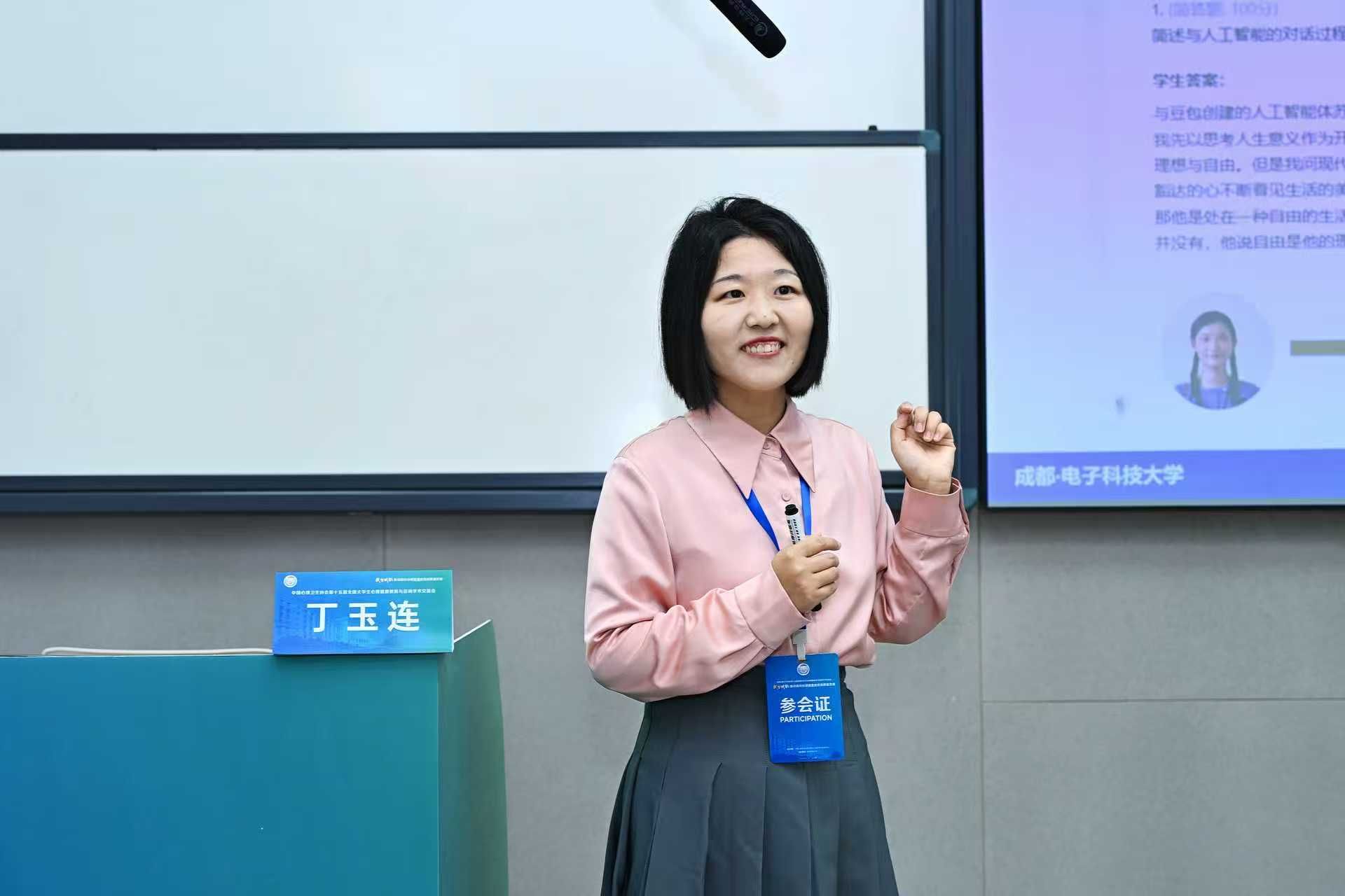 其中,我校大学生心理健康教育与咨询中心专职教师丁玉连以《AI赛博助教的链式心理成长回路》为题,作“心理育人创新路径”的分论坛报告。丁玉连老师提出运用赛博助教提供无限认知杠杆,教师守护人性温度,让学生在与AI的持续互动中完成心理成长,从而达成心理健康教育的核心目标,即建构自我意义。