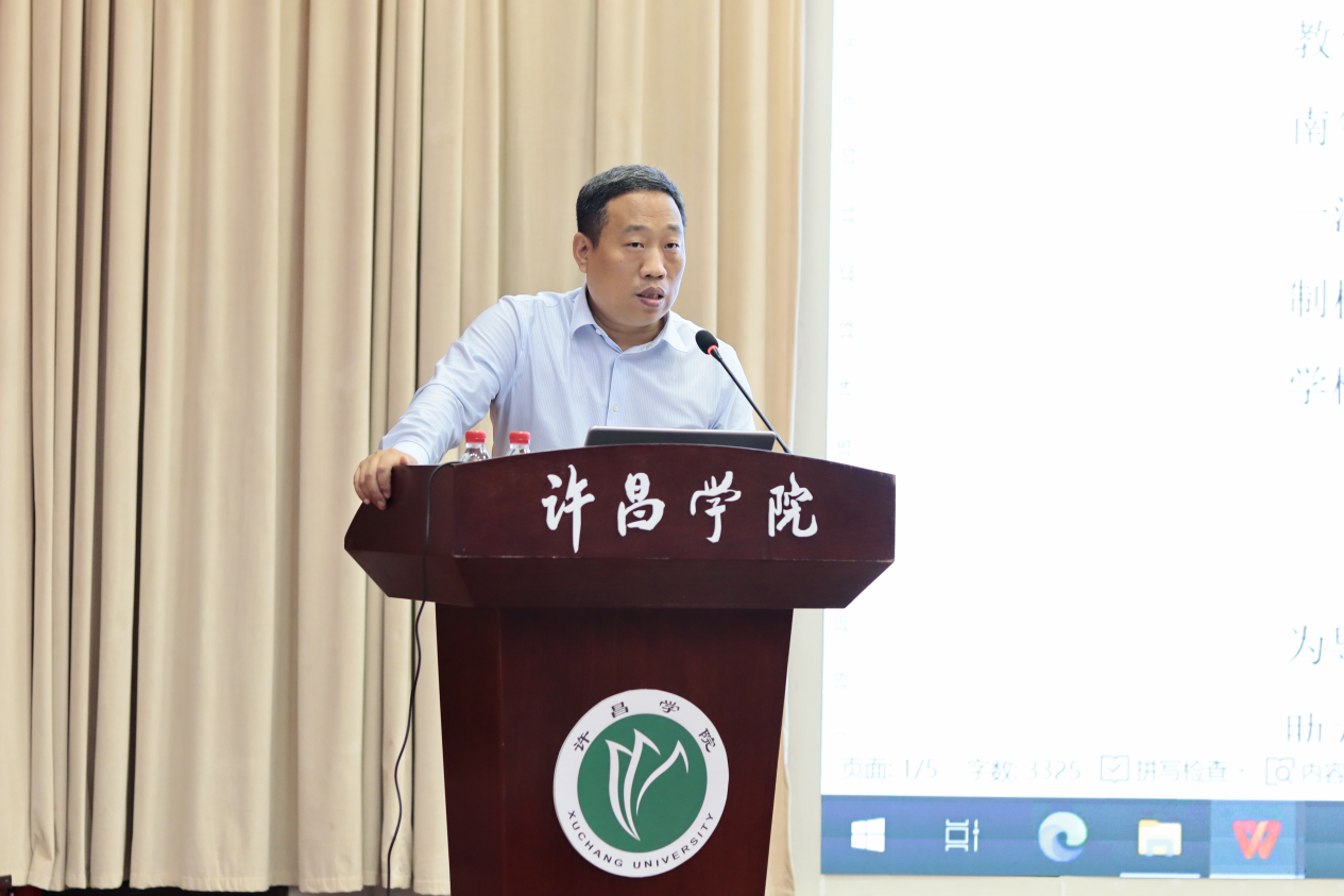 11月3日下午三点,许昌学院第十七期“学生学习与发展指导”辅导员工作坊在图书馆二楼学术报告厅举行。本期活动由党委学生工作部主办、信息工程学院“灯塔领航”辅导员工作室承办,党委学生工作部部长周银超出席,学生中心相关部门负责人、各二级学院(书院)党委副书记、全体专兼职辅导员共300余人参加会议。