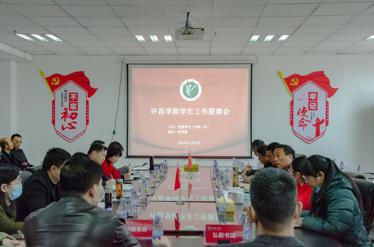 2021年11月16日上午,我校在文科综合楼1225会议室召开学生工作联席会。会议由学生处处长周银超主持,党委学生工作部(处)、党委统战部、党委保卫处、教务处等相关职能部门负责人以及各二级学院(书院)副书记参加了会议。