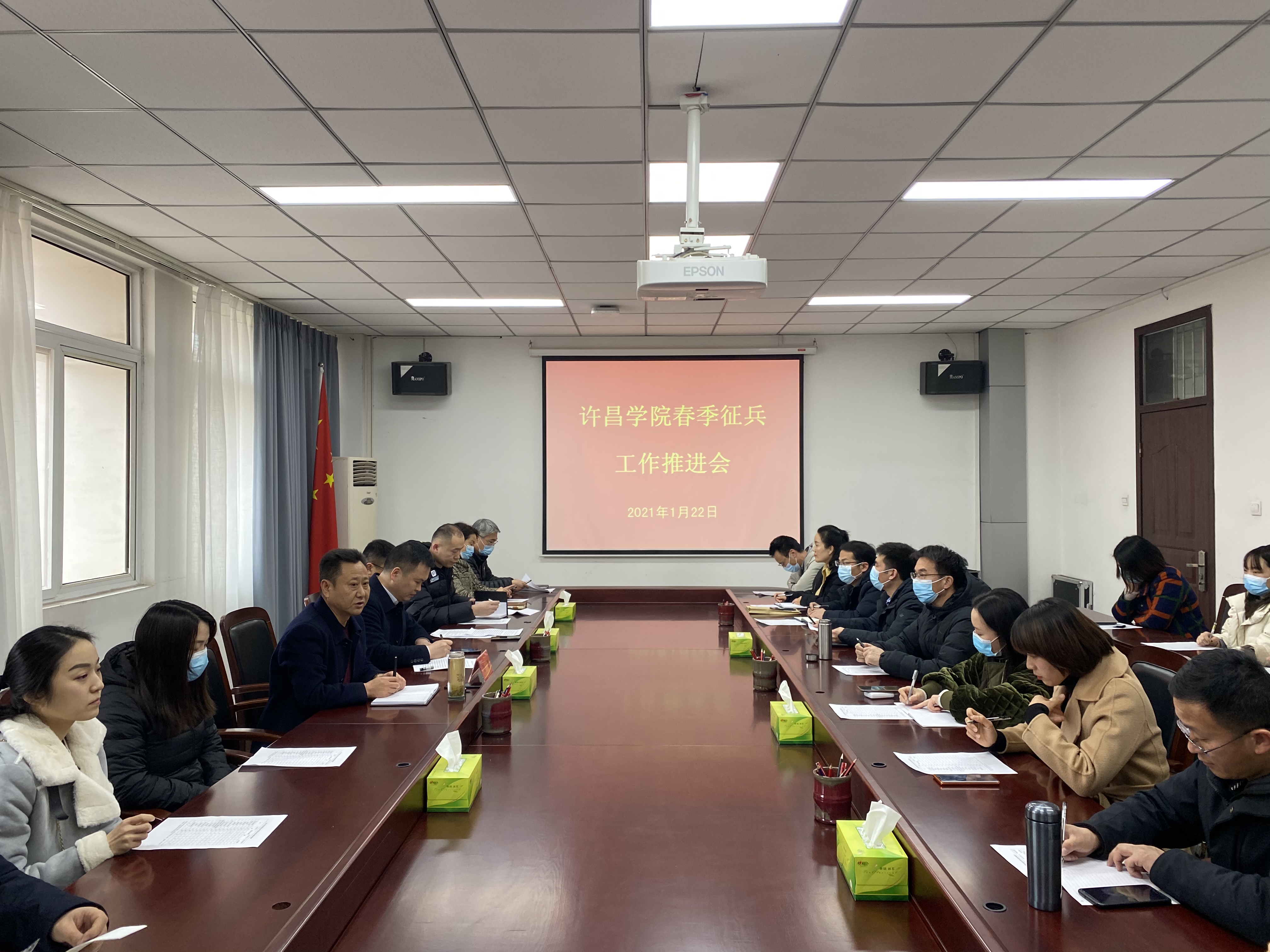 1月22日下午,我校召开2021年度春季大学生征兵工作推进会。校党委副书记孙海出席会议。校人民武装部负责人,各二级学院党委副书记和征兵专干参加会议。