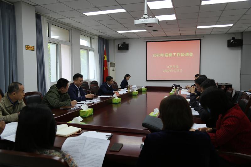 10月5日下午,我校在办公楼第四会议室召开2020年迎新工作协调会。副院长潘春彩出席会议并讲话。许昌学院2020年迎新工作领导小组全体成员参加了本次会议。