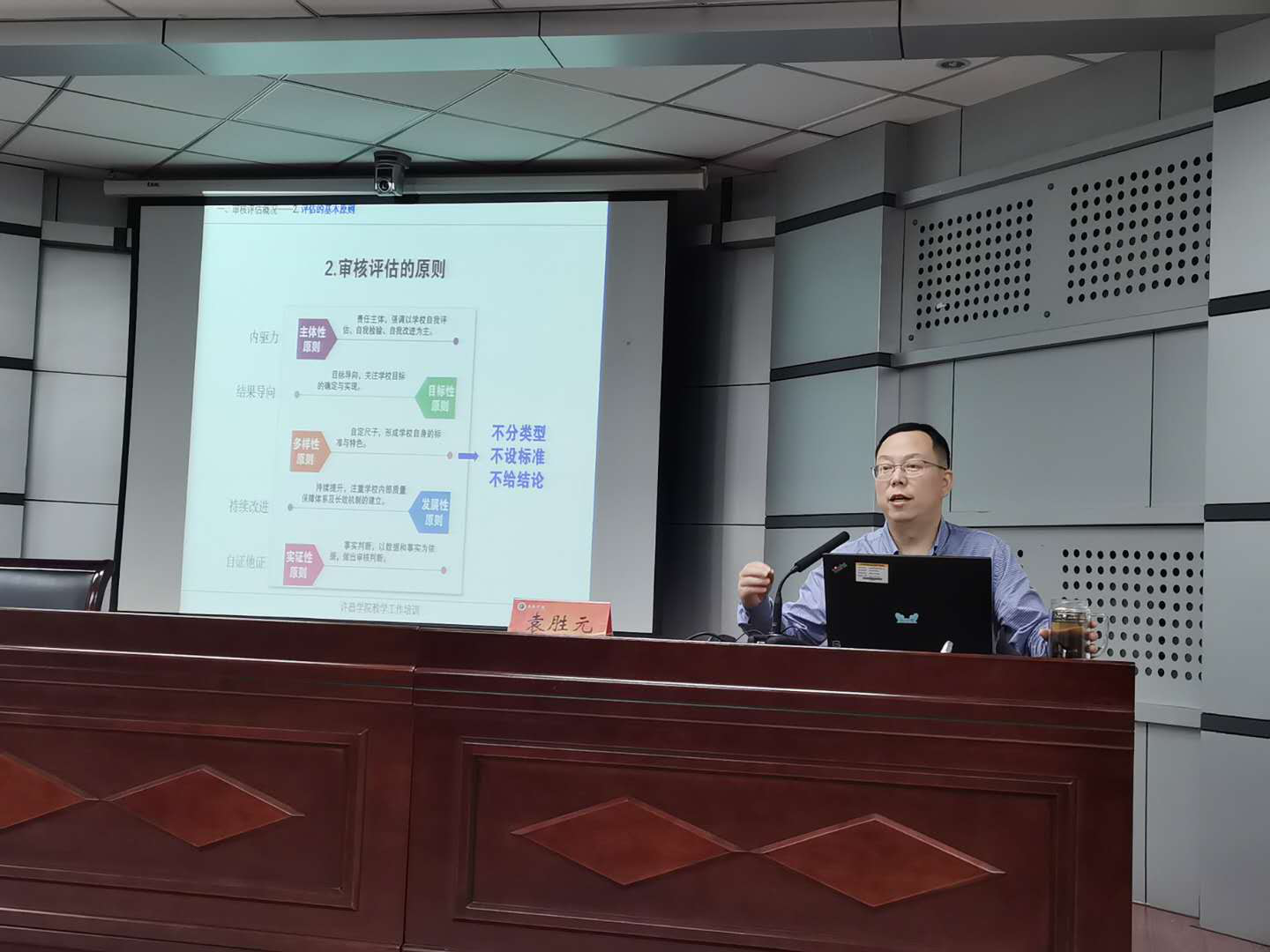 张鹏辉处长总结强调,审核评估过程中,学生的教育引导工作也是重要任务,希望大家根据袁院长报告所讲内容及我们发放的培训资料,结合各院实际情况召开主题班会,带领学生认真学习。