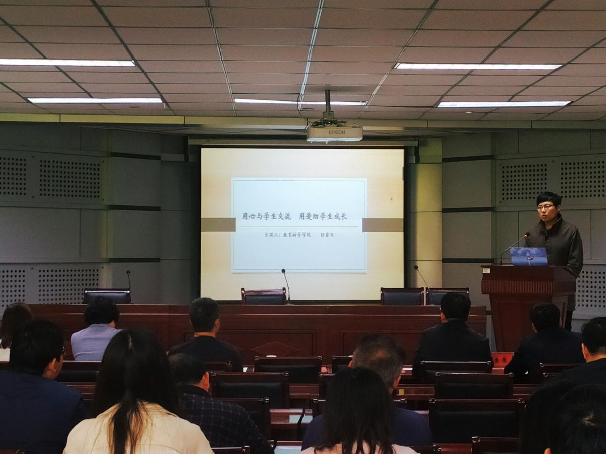 会上,校党委副书记孙海充分肯定了我校在学生工作方面取得的优异成绩并代表学校向各二级学院和全体辅导员一年来的辛勤付出表示感谢。他指出,辅导员老师奋斗在学生工作的第一线,要始终紧紧围绕“九个坚持”,深入贯彻落实“六个下功夫”,把“立德树人”这一目标贯穿到日常工作的各个方面,贯穿到学生成长成才的全过程。他对全体辅导员寄予三点希望:一是爱岗敬业,做学生的良师益友。辅导员肩负着教育、服务和引领学生的重要职责,要热爱自己的岗位,积极融入到学生当中去,从热爱中发现工作的乐趣。二是不忘初心,激发职业发展内驱力。只有真正认可这份事业的价值感,不忘初心、踏实奋进、久久为功,才能在真正激发职业发展的内驱力。三是勤于学习思考,善于总结提高。在扎实做好日常工作的同时,要潜心研究辅导员工作的内在规律,凝练工作特色,在“学思践悟”中,不断提高自身能力,努力成为学生成长成才的人生导师和健康生活的知心朋友。