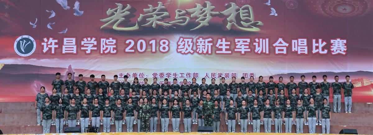 9月18日下午,我校2018级新生军训合唱比赛在羽飞田径场成功举办。魏都区武装部政委牛听甫和我校保卫处、学生处、团委、音乐舞蹈学院等相关部门负责人出席并担任比赛评委,各学院党总支副书记、新生辅导员和全体2018级新生共计7400余人共同观看了比赛。