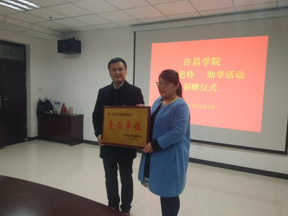 善举创造和谐,爱心传承美德。12月1日下午由捷优思特(天津)科技有限公司许昌学院君达“JUST”眼镜体验销售中心资助的“捷优思特、爱心助学”捐赠发放仪式在文科综合楼会议室举行。学生工作处、学生资助管理中心、创新创业学院负责人、指导老师、爱心捐赠企业及全体受助学生共同参加了发放仪式。