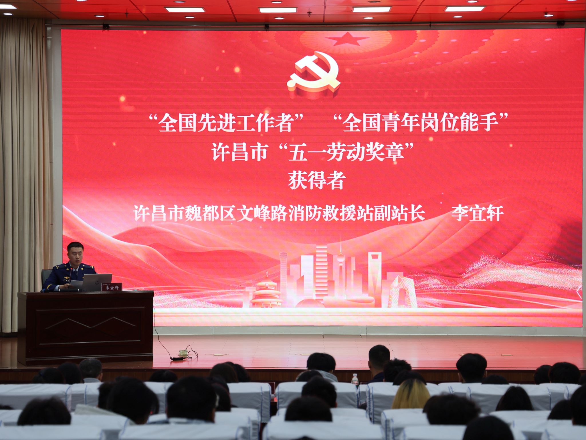 12月11日下午,我校在图书馆二楼学术报告厅举行“中国共产党人精神谱系”暨“劳模工匠进校园”主题宣讲活动。“全国五一劳动奖章”获得者、许昌城市公共交通有限公司运营处长吕全胜,全国先进工作者、许昌市魏都区文峰路消防救援站副站长李宜轩担任宣讲嘉宾,学校党委宣传部、党委学工部、学生中心和弘毅书院“一站式”学生社区等单位相关负责人和各学院(社区)师生代表共300余人参加活动。