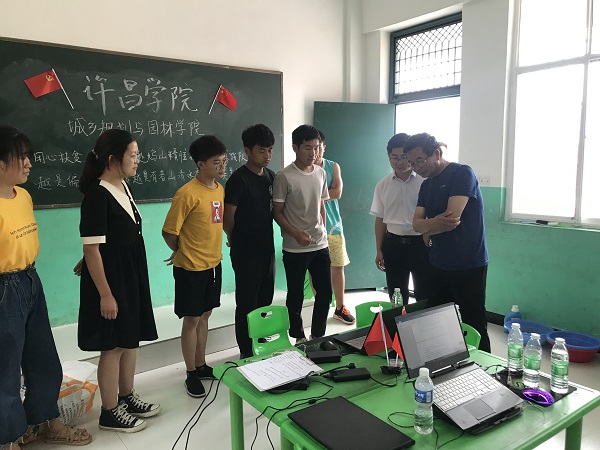 7月10日上午11时,许昌学院城乡规划与园林学院“用心扶贫,用行济困”赴鸠山精准扶贫实践队按原计划对鸠山镇特色产业园建设的起稿提出建议草案,工作期间,我院党总支书记王中立、副书记侯刚、城规与园林系副主任蔡林林以及辅导员赵冶倩楠前往鸠山镇张家庄对实践队进行了亲切慰问。