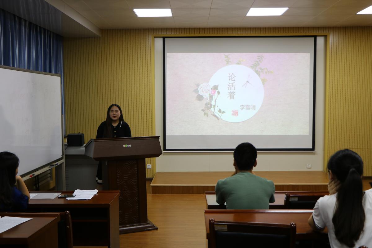 选手展示完毕后,闫冬老师从参赛选手陈述内容的完整性、重点突出、情绪饱满、具有创新性方面进行点评,她肯定了参赛选手积极备赛的态度,同时也指出个别选手思路不清晰、语言不够流畅方面的缺点,同学们受益很深。点评结束后,老师建议同学们多读一些哲学性质的书籍,不断地来提高自我层次和道德修养。