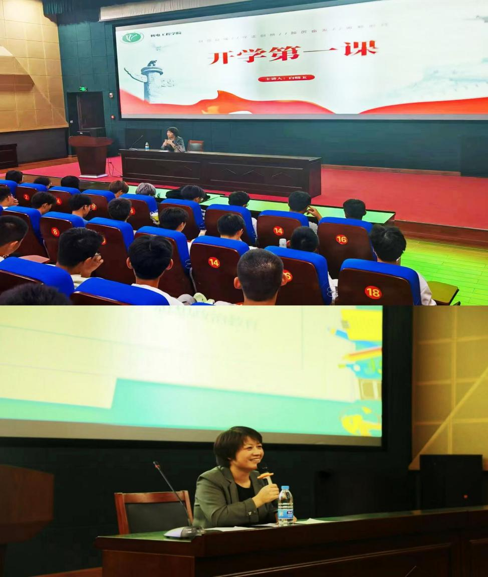 10月10日晚,在学生中心二楼多功能报告厅,机电工程学院党委书记白晓玉主持开展了秋季开学思政第一课,白书记以“什么是大学”这一问题作为切入点引发大家思考,同学们热烈讨论,积极讲述自己对大学的认识,她鼓励新生们要树立明确目标,学好专业知识,积极参加各类科技学术和社会实践活动,拓宽视野,增长见识;要勤观察,会沟通,要学会爱,懂感恩。