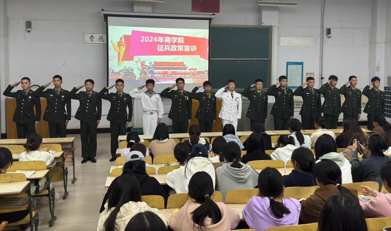 为进一步增强2024级新生的国防意识,帮助他们了解大学生应征入伍政策,激发同学们参军报国的热情,11月3日,商学院开展了新生国防教育暨大学生应征入伍政策宣讲活动。学院党委副书记海泳、辅导员郭少辉、退伍大学生代表和全体大一新生参加了此次宣讲活动,活动由征兵专干张小萍主持。