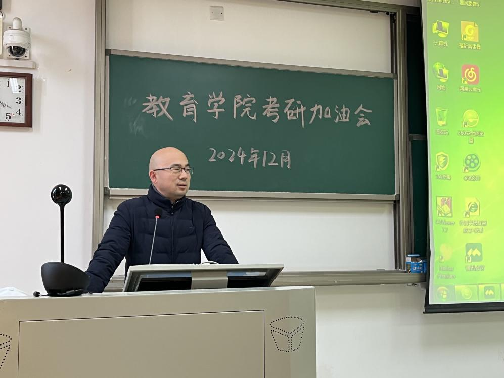 为激发2025届毕业生考研自信、疏解考研压力,2024年12月16日,教育学院举行“成功上岸,一‘研’为定”2025届考研冲刺加油会,教育学院院长张笑涛教授、马克思主义学院王卫才博士、教育学院崔广立老师围绕不同主题与与考研学子进行分享交流,会议以线上线下相结合的方式进行。