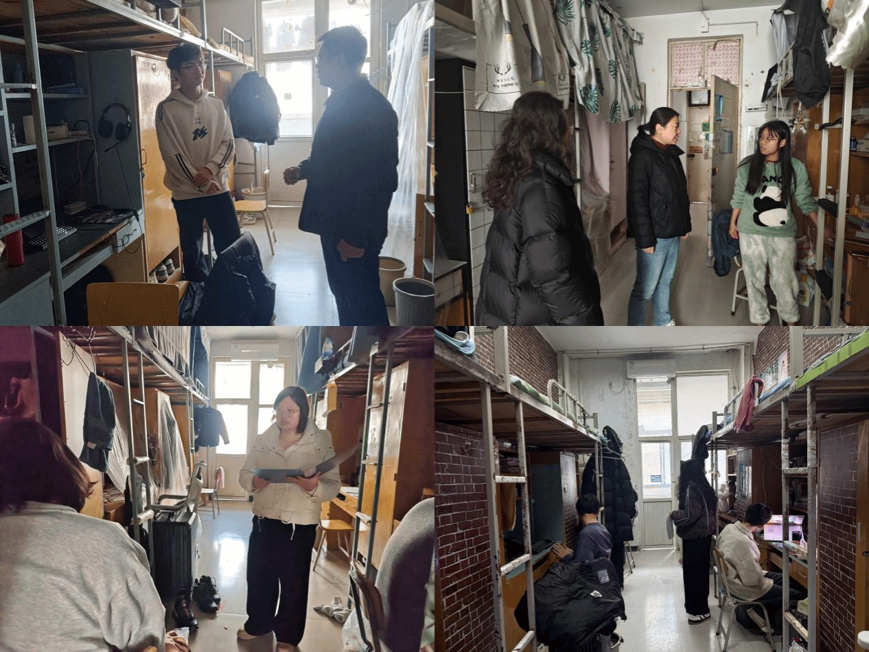 3月8日上午,学院党委书记梁衡、党委副书记王晓霞带领全体辅导员,深入学生寝室开展走访慰问与安全隐患排查工作。走访过程中,我院领导、老师与返校学生亲切交谈,细致询问同学们的返校行程、生活起居及新学期规划,倾听学生诉求,送上学院的关怀与新学期的祝福,叮嘱同学们快速调整状态,适应校园生活。同时,辅导员老师严格落实安全工作要求,重点围绕返校安全、寝室用电安全、消防安全、电信诈骗防范、交通安全、春季传染病预防等关键环节,进行全方位、无死角排查,及时排查违规用电、消防安全隐患等问题。此外,辅导员老师向全体学生着重强调我校无烟校园建设要求,倡导同学们自觉遵守校园规定,远离烟草,共同营造健康、文明、整洁的寝室环境与校园氛围。