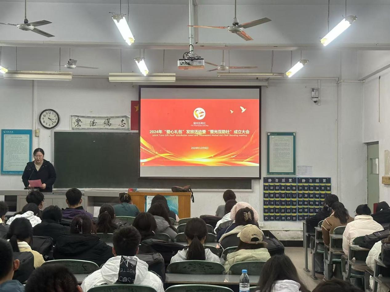 成立大会前,学生资助管理中心向100名2024级获助学生发放了包含学习和生活用品的“爱心礼包”,不仅使家庭经济困难新生真切地感受到学校对他们的关心与关爱,也有助于培养学生的感恩意识。